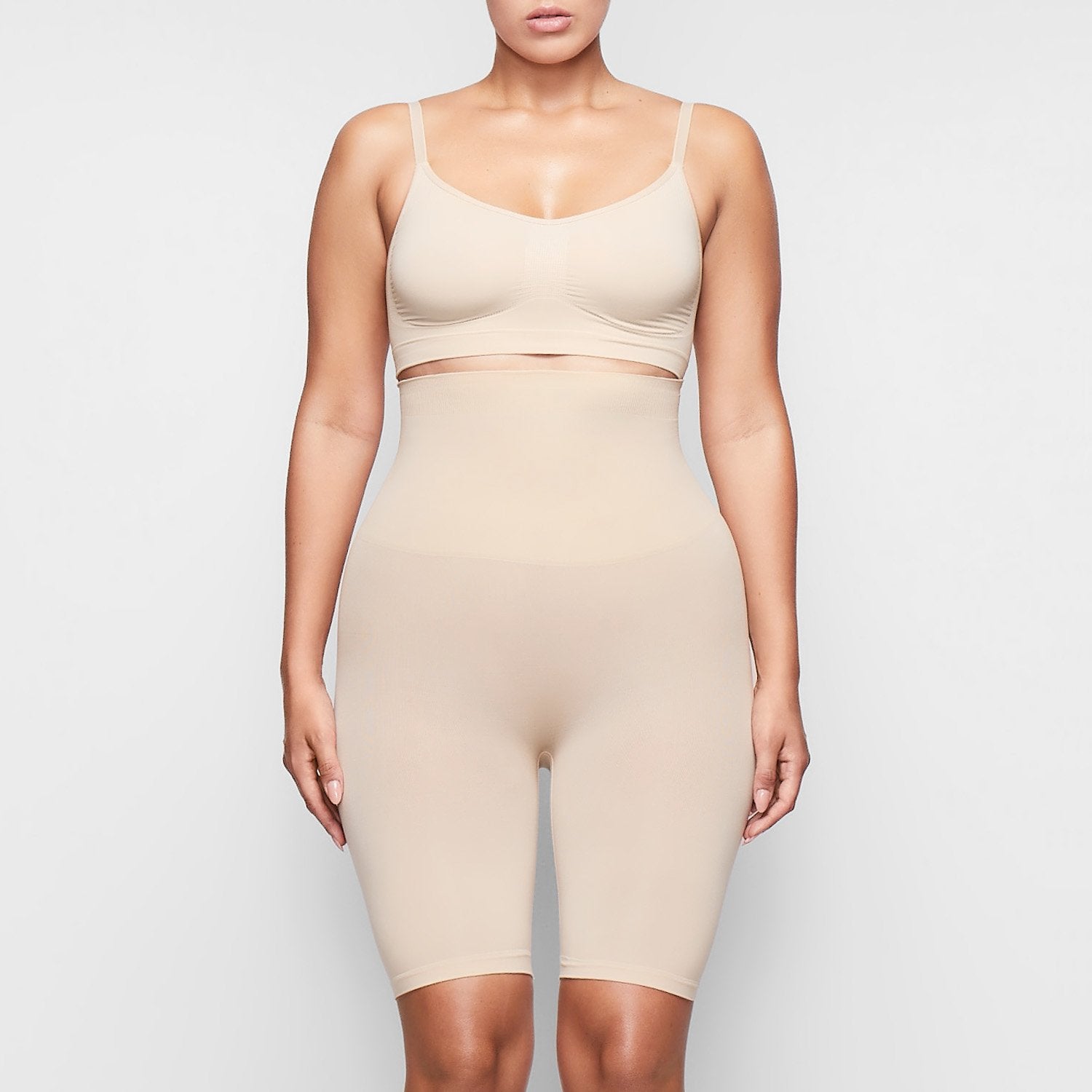 A full-coverage essential in our most supportive construction, this mid-rise short smooths your thighs, shapes your butt, and tightly contours your core.