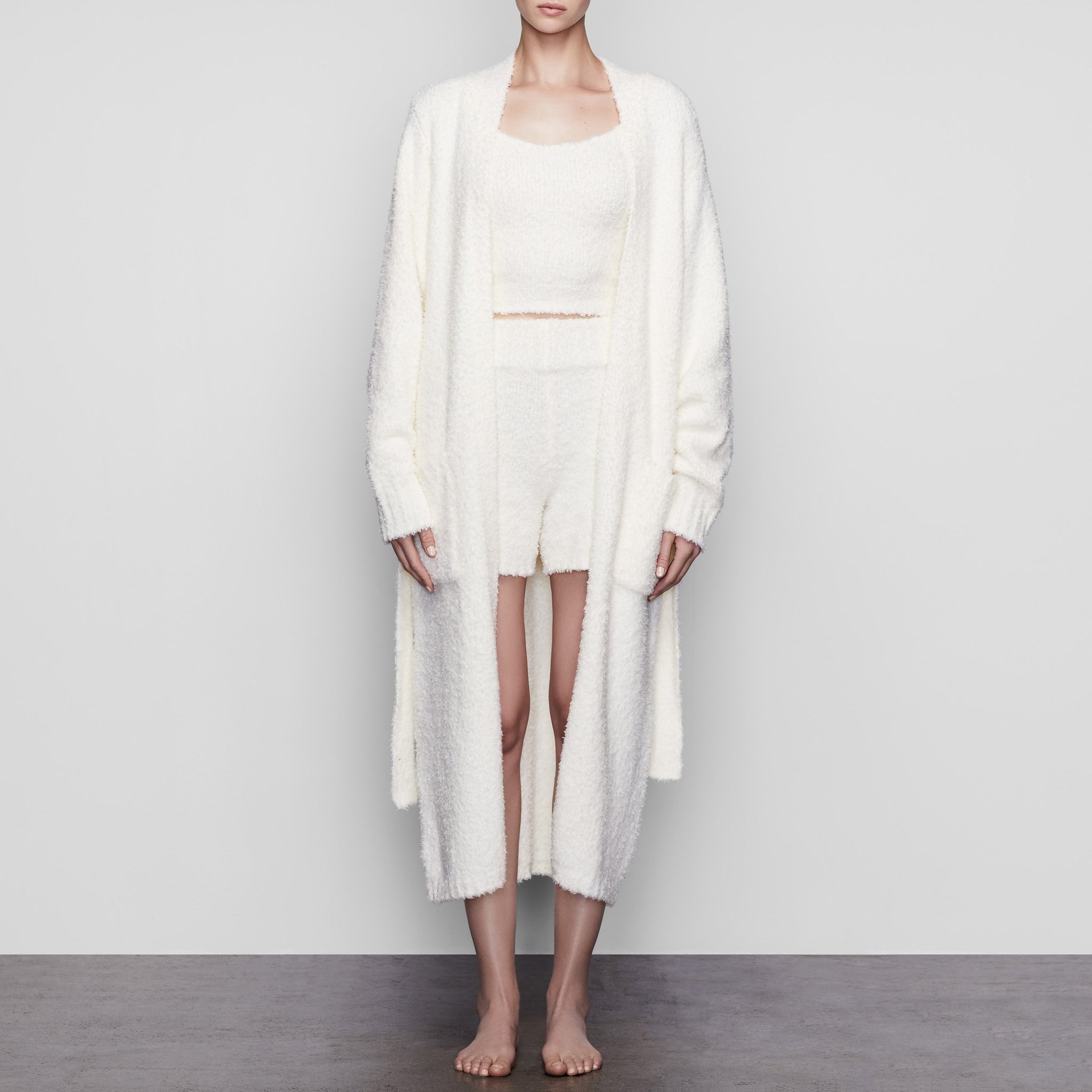 Featuring a tie at the waist and functionalpatch pockets, the Cozy Knit Robe is the epitome of luxe loungewear. Composed of soft and breathable boucle yarn, the Cozy Knit Robe delivers incredible warmth and comfort for everyday luxury.