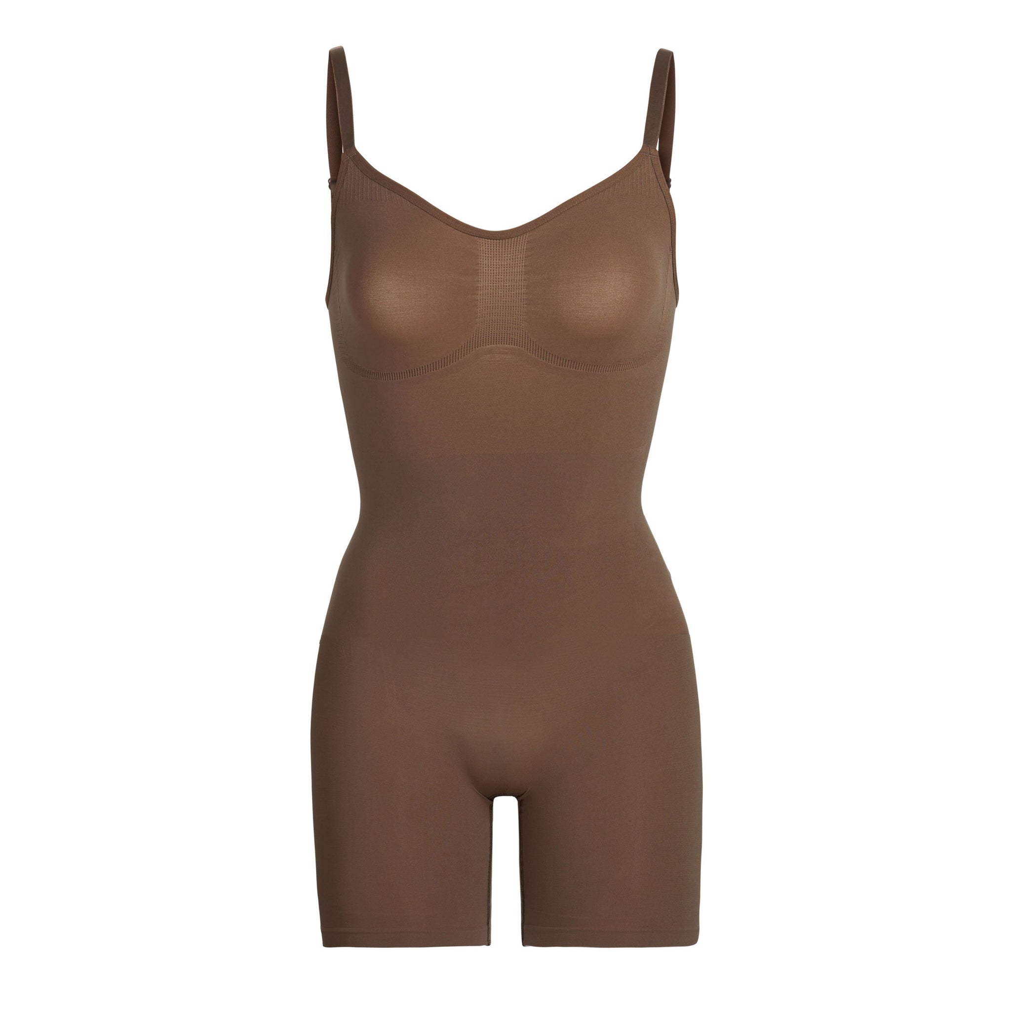 With a mid-thigh length, this essential bodysuit holds in your core, shapes and lifts your butt and chest, and smooths your upper thighs. Its whisper-soft and seamless construction makes this sculpting piece a necessity for enhancing your body' natural shape.