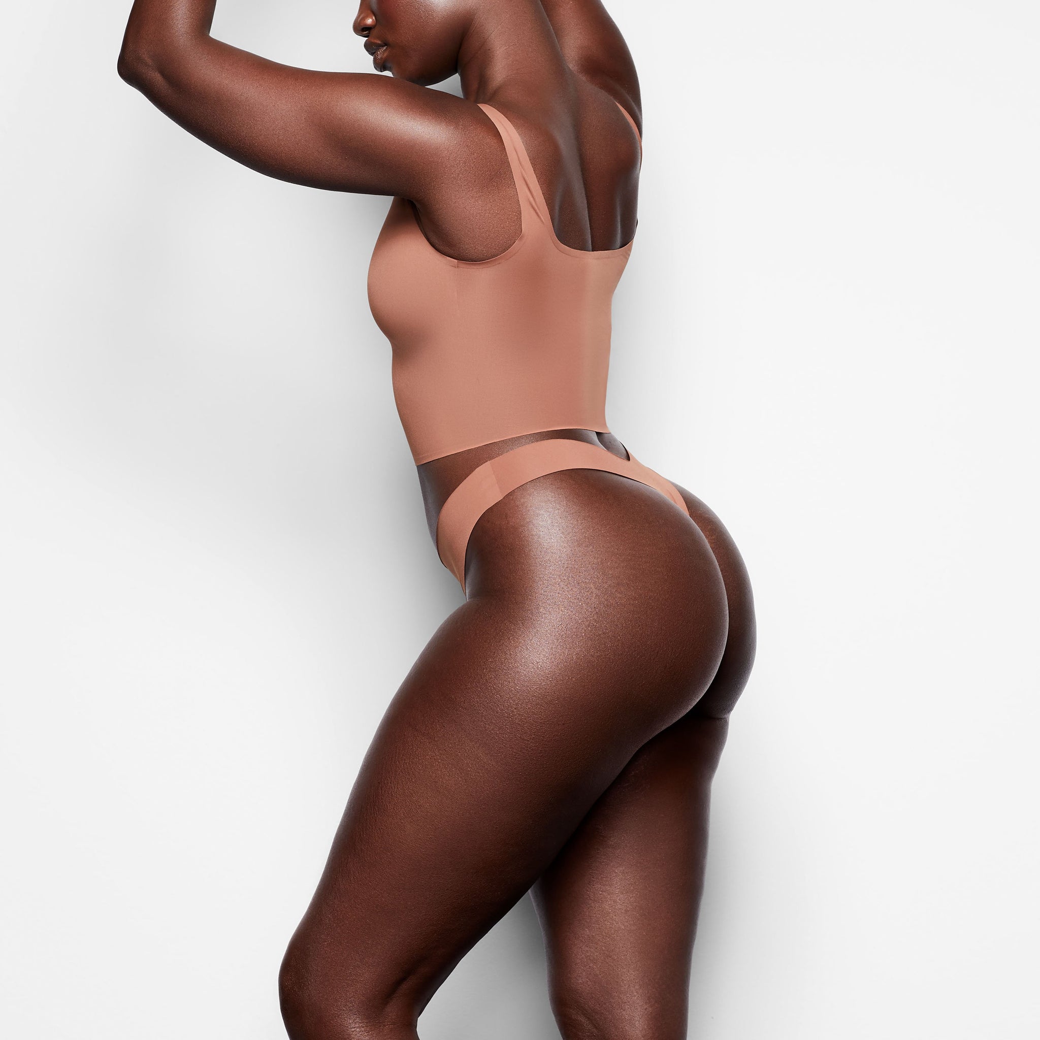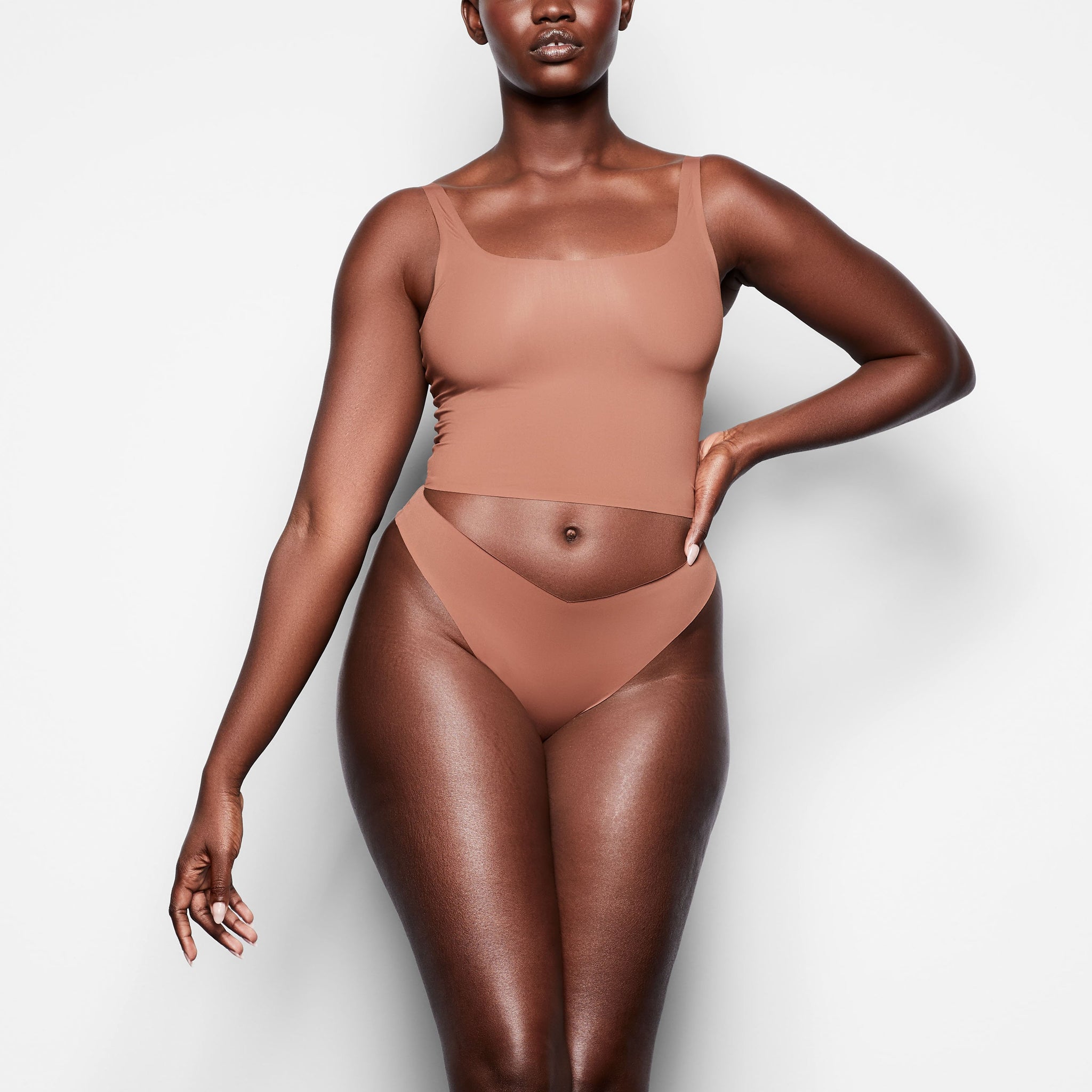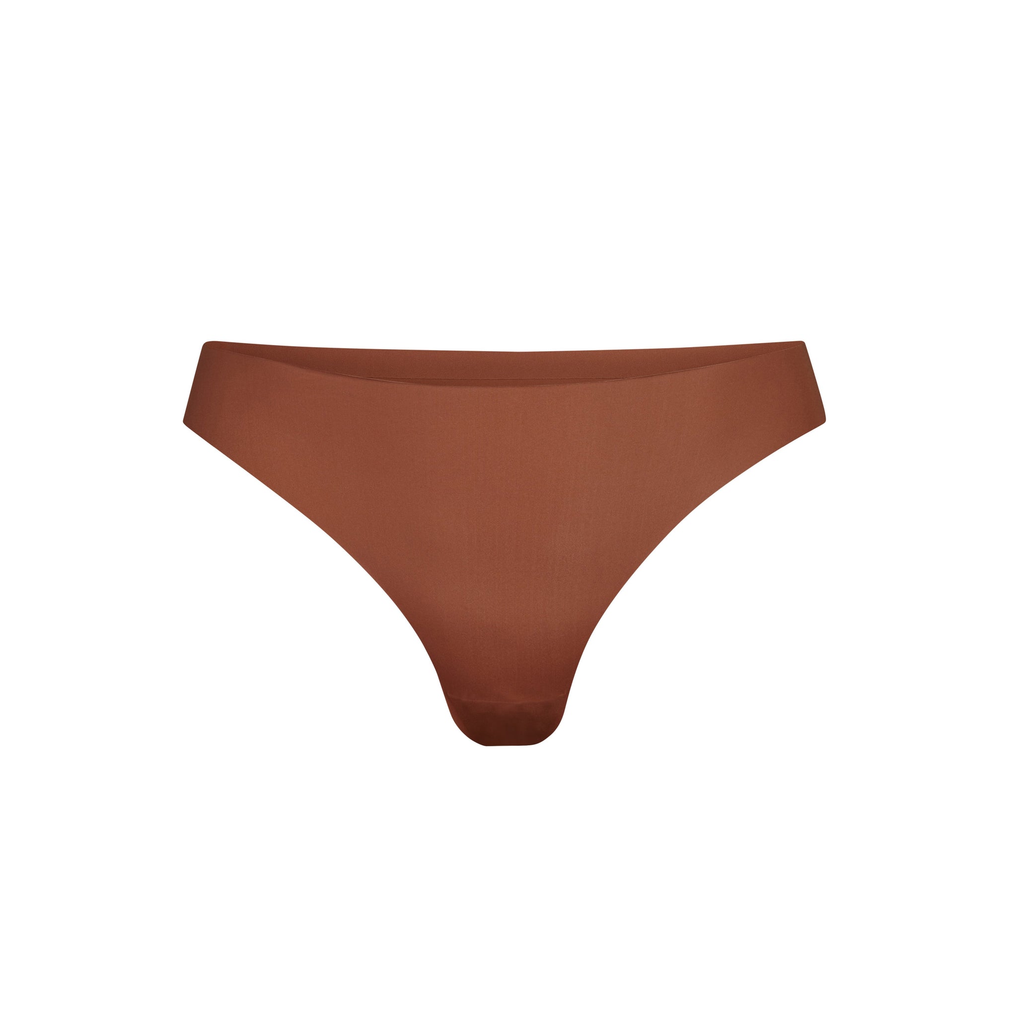 With free-cut construction and silky seamless finish, the Smooth Dipped Thong is an essential invisible underwear solution. The raw-cut edges of leg openings prevent pinching and digging for a comfortable, second-skin hold. This Thong features a flattering dipped front and is intended to be worn high on hips.