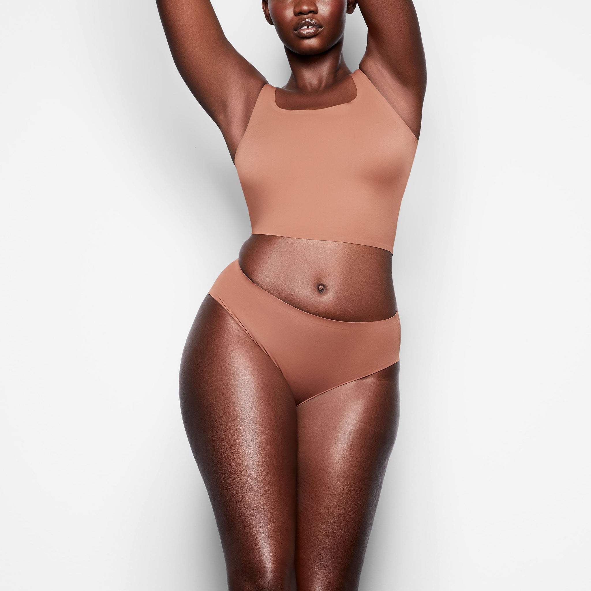 The Smooth Tank is the ultimate base layer and a true wardrobe essential. Made of a silky smooth lightweight fabric that lays flat under clothing and featuring bonded edges that prevent rolling, this Tank clings and molds to the body. The slightly cropped silhouette that that hits at the natural waist offers a supportive, flattering fit.