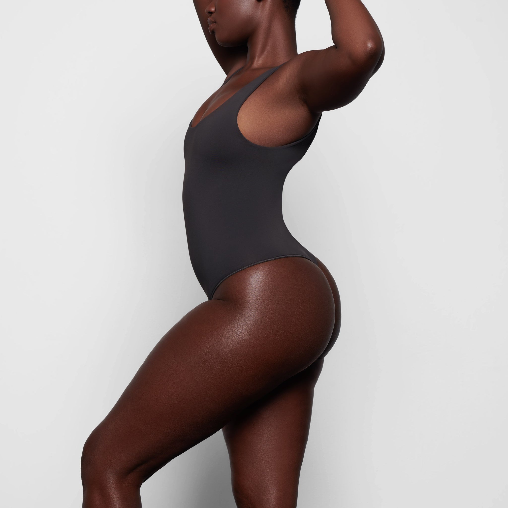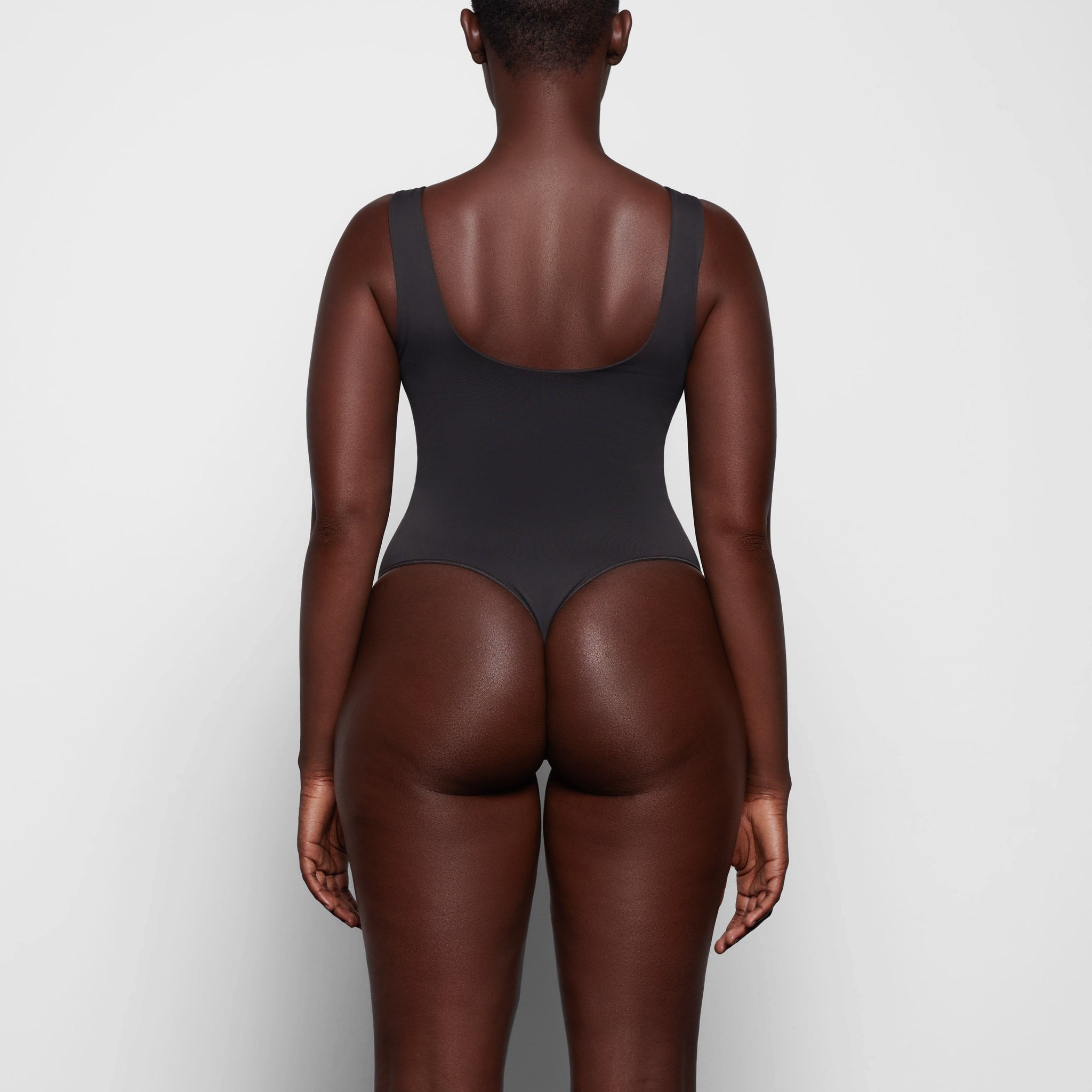 A must-have for summer dressing, the Smoothing Bodysuit features a flattering double scoop neck and a thong back that makes it seamless under clothing.
